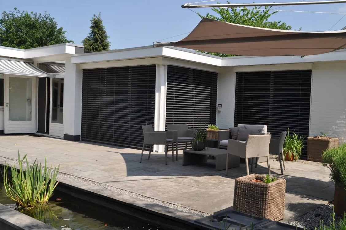 Buitenjaloezieën zijn de meest directe vorm van zonwering. De lamellen reflecteren moeiteloos felle zonnestralen. Het huis blijft daardoor niet alleen koeler, maar ze voorkomen ook schitteringen op je televisie en laptopscherm.